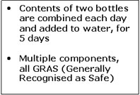 The kit is in an easy-to-use format and provides for dosing on five consecutive days. A balanced two-part system is used involving adding Liquid Activator on each day to that day's Solid Components.